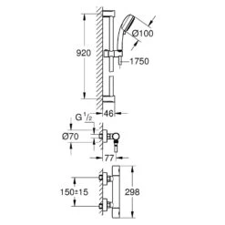 Grohe Precision Flow – Doucheset Met Thermostatische Kraan, Met Douchestang 920 Mm, Chroom 34842000