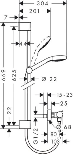Hansgrohe Crometta 100 – Vario Doucheset Met Thermostaat, Douchestang 650 Mm, Wit/chroom 27030400