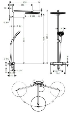 Hansgrohe Raindance Select S – Showerpipe Douchset Met Thermostaat, 1jet, Mat Zwart 27633670
