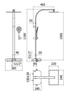 Paffoni Douchesets – Doucheset Mini Birillo 225 Met Thermostaatkraan, Mat Zwart ZCOL638LIQNO