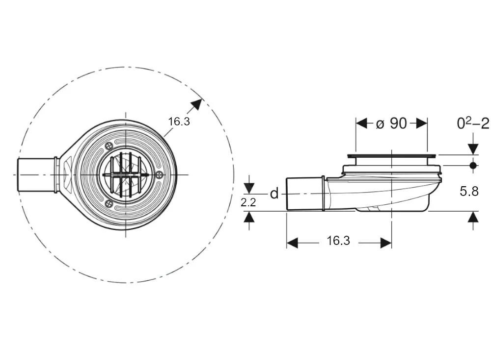 - afvoercapaciteit bij stuwhoogte 15 mm: 0.5 l/s