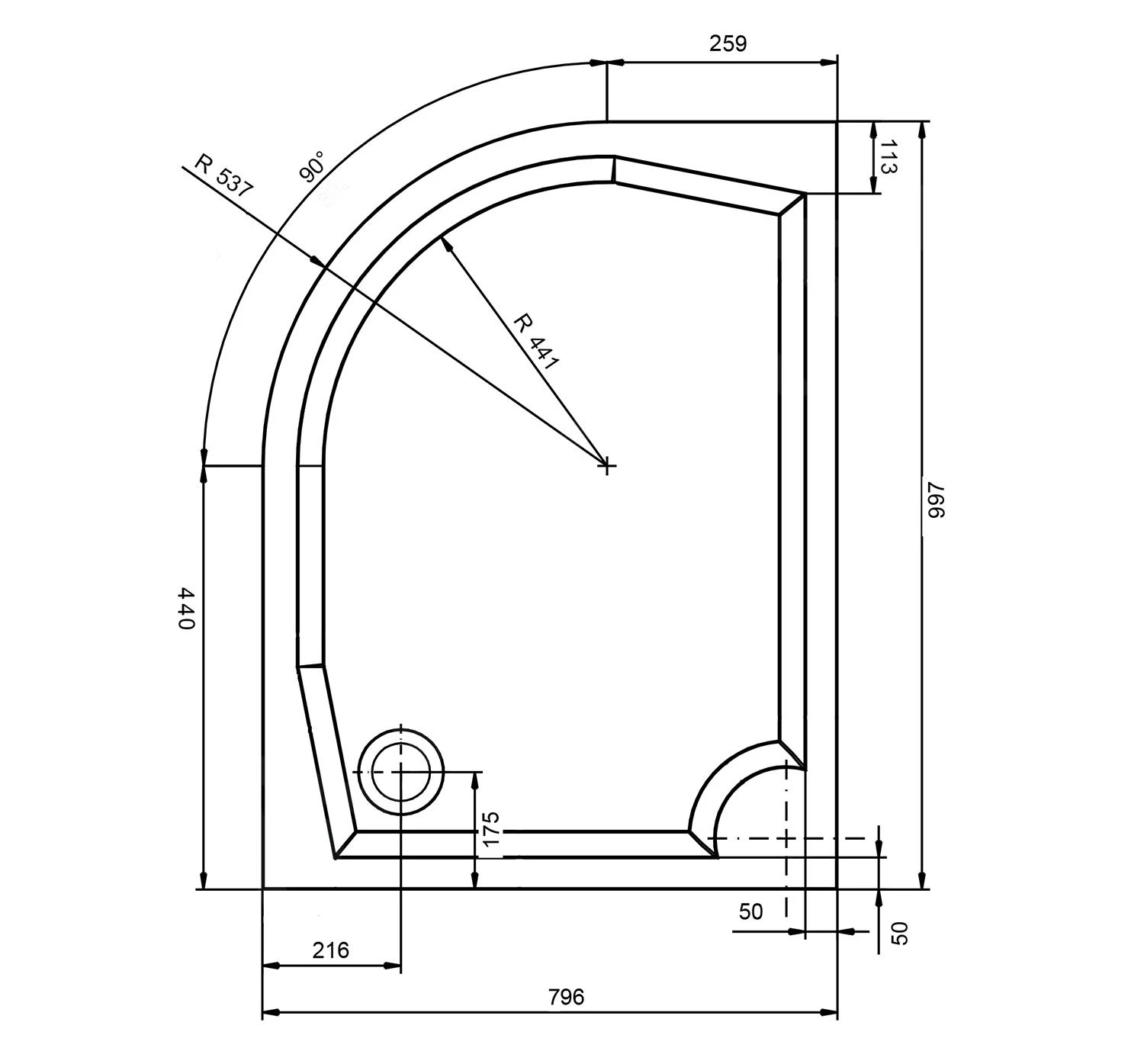Gelco Douchebakken – RIVA Douchebak, 1000×800 Mm, Rechts, Wit GR10080R