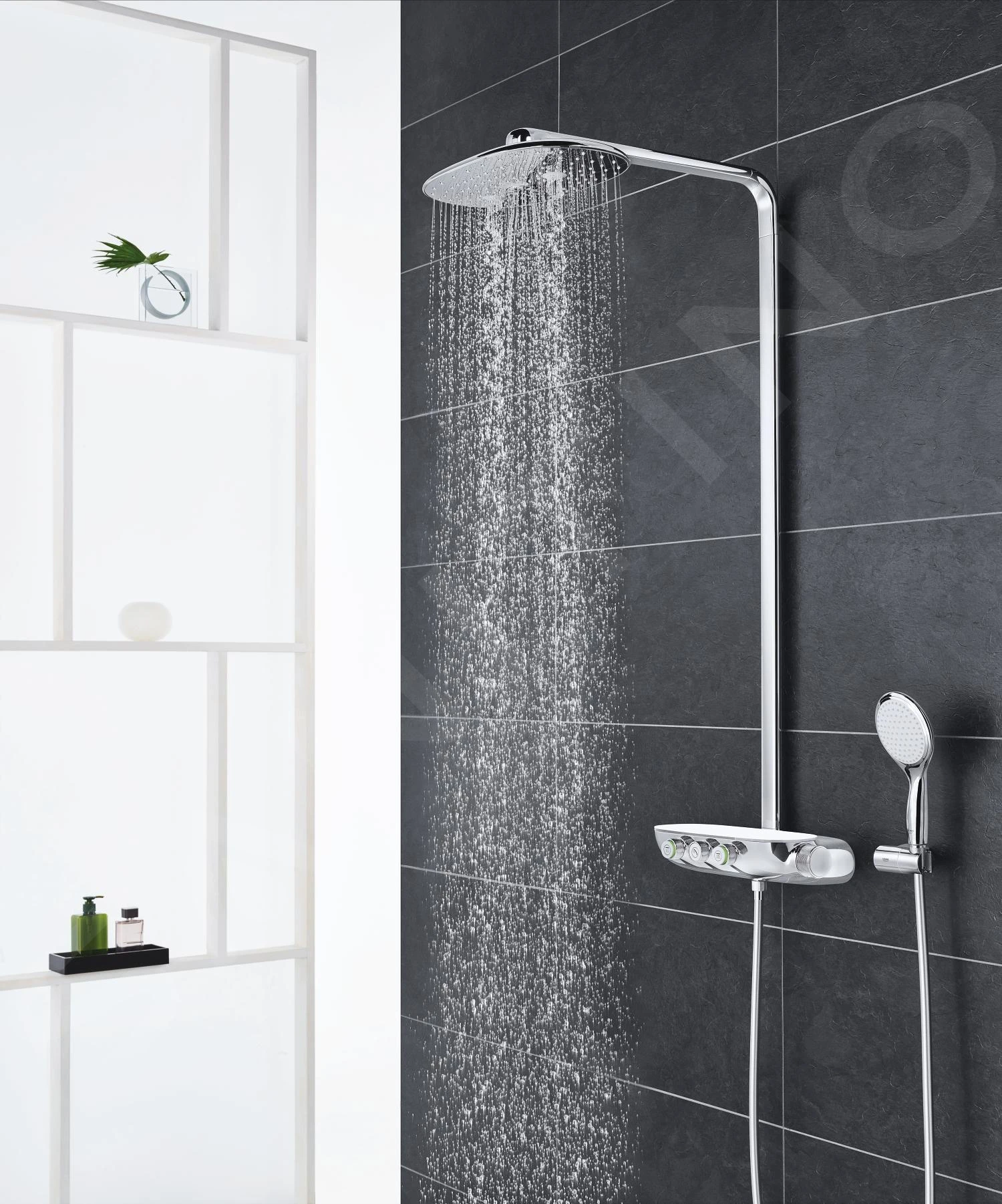 Het bedienen van de doucheset middels de thermostatische kraan is eenvoudig en intuïtief. Je stelt de watertemperatuur eenvoudig in met de ene knop en de straalintensiteit met de andere. Eenvoudiger kan dat niet! De GROHE SafeStop-veiligheidsfunctie voorkomt dan onaangename verbrandingen door de temperatuur niet hoger dan 38 ˚C laten oplopen. Voor je veiligheid verder zorgt de GROHE CoolTouch-technologie, hiermee worden de oppervlakken nooit te heet. Een praktische toevoeging is zeker en vast de GROHE EasyReach-douchetray, waarmee je favoriete wasmiddelen en cosmetica binnen handbereik hebt. Voor meer geniet zorgt de krasbestendige StarLight chroom afwerking, waardoor alle oppervlakken jarenlang stralend blijven. Bovenop, de GROHE EcoJoy waterbesparende functie draagt bij aan het milieu. Kies voor het GROHE SmartControl douchesysteem en geniet van pure Duitse perfectie.
