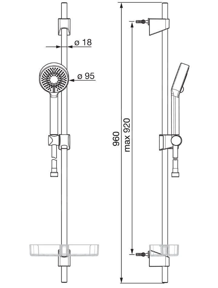 - douchestang 960 mm met houders en glijstuk