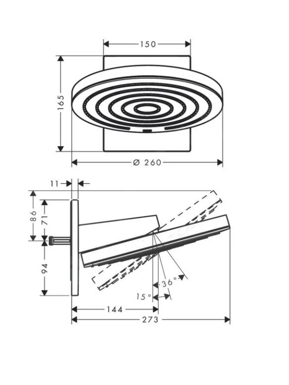 - grootte douchekop: 260 mm XXL Performance