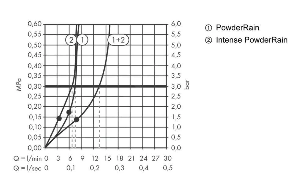 - doorstroming Intense PowderRain (bij 0,3 MPa): 6,5 l/min