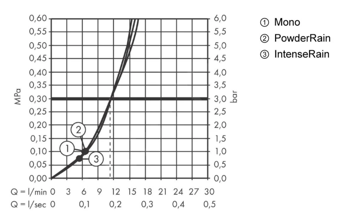 - maximale doorstroming (bij 0,3 MPa): 11,5 l/minÂ