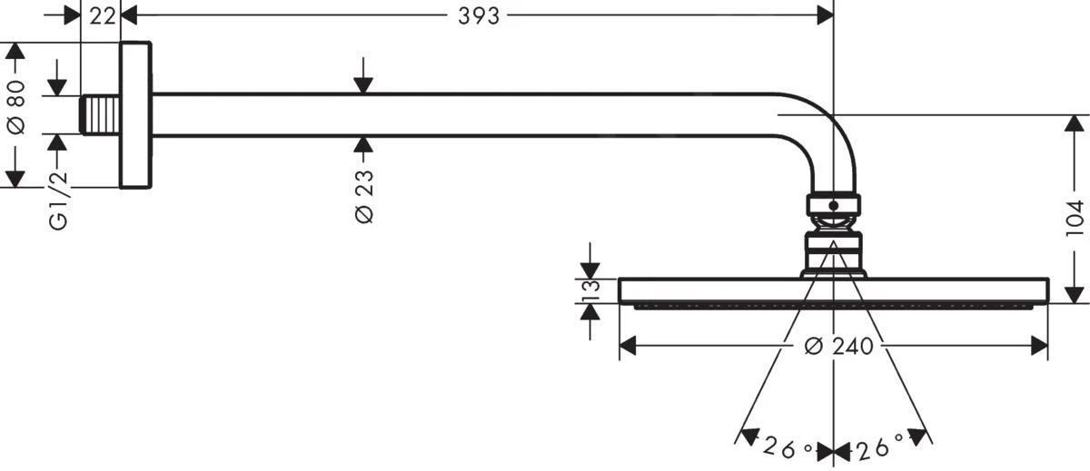 - maat van de douchekop 240 mm