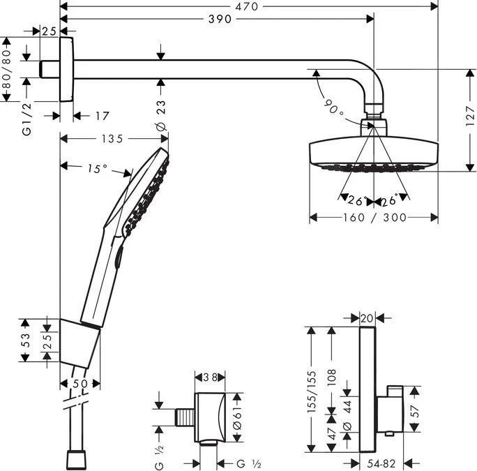 - Rainmaker Select E 300 2jet hoofddouche met douchearm 390 mm (# 27385000)