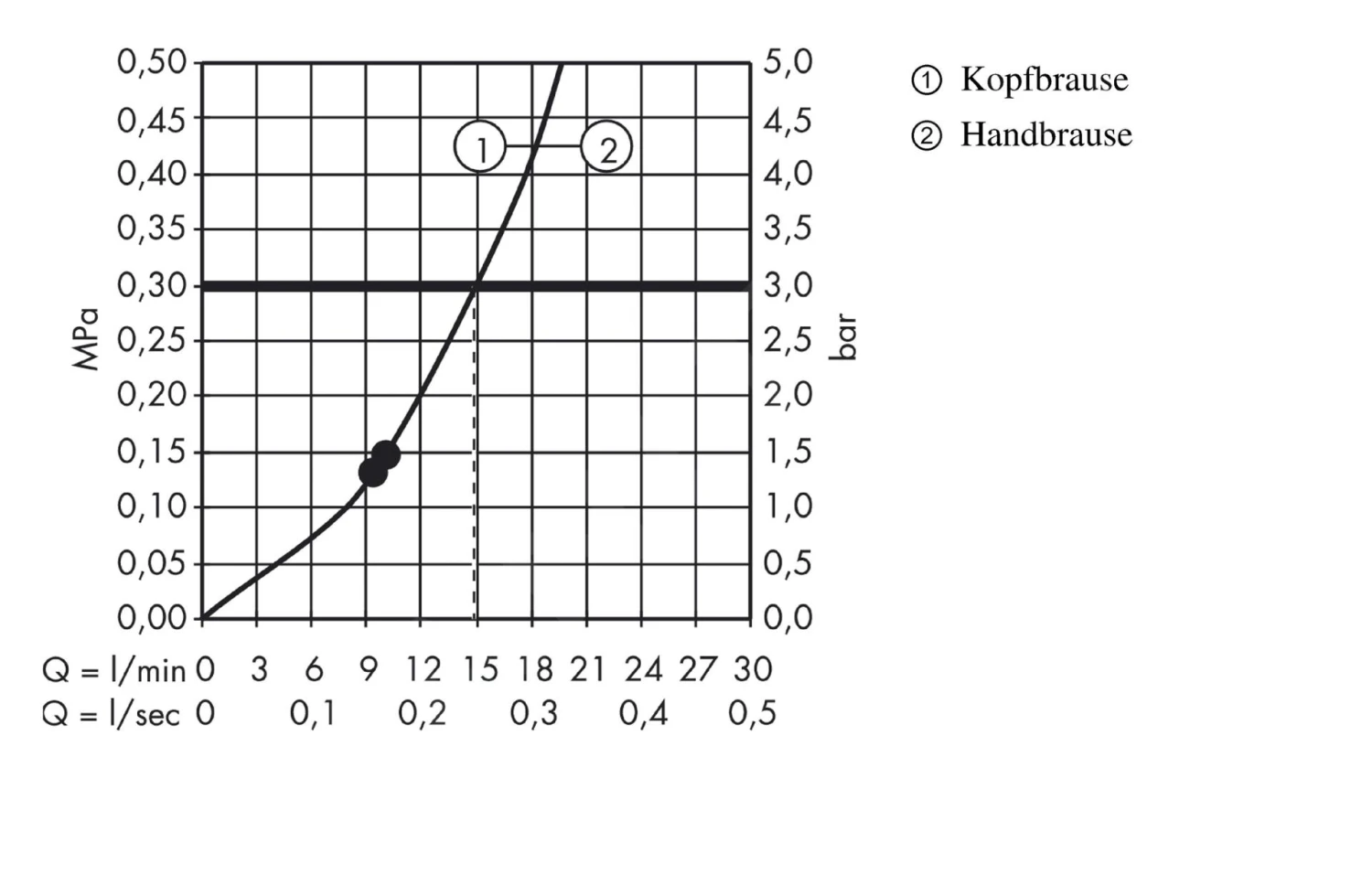 - maximale doorstroming (bij 0,3 MPa): 15 l/min