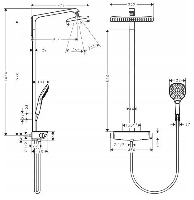 - lengte douchearm: 360 mm