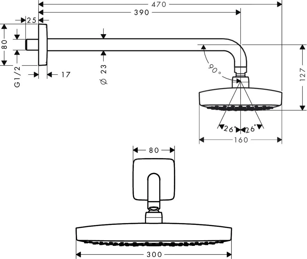 - grootte van de douchekop: 300 x 160 mm