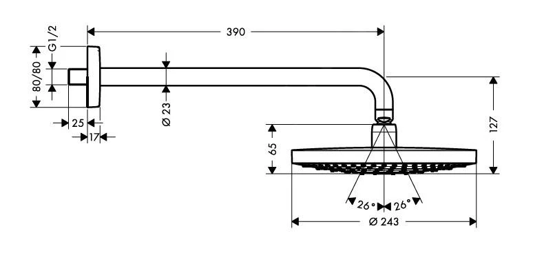 - oppervlak van het douchedeel in twee varianten: chroom of wit