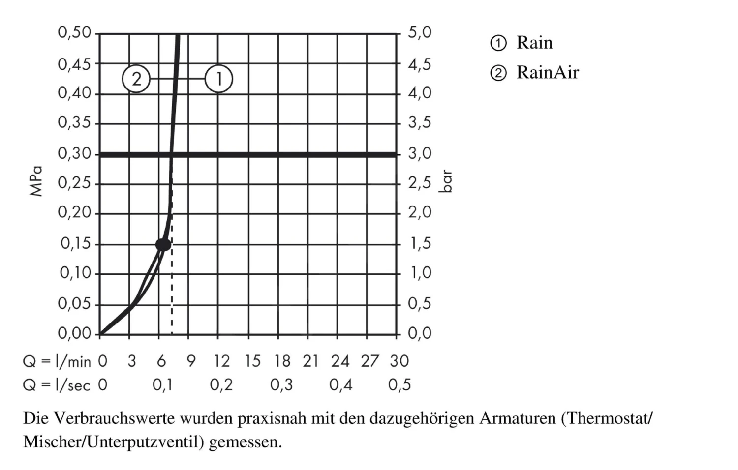- doorstroming van de RainAir straal (bij 0,3 MPa): 9 l/min