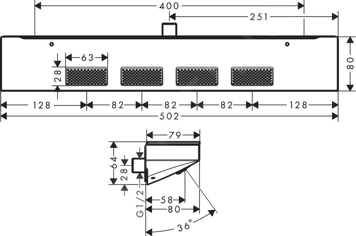 - grootte douchemodule: 502 × 81 mm