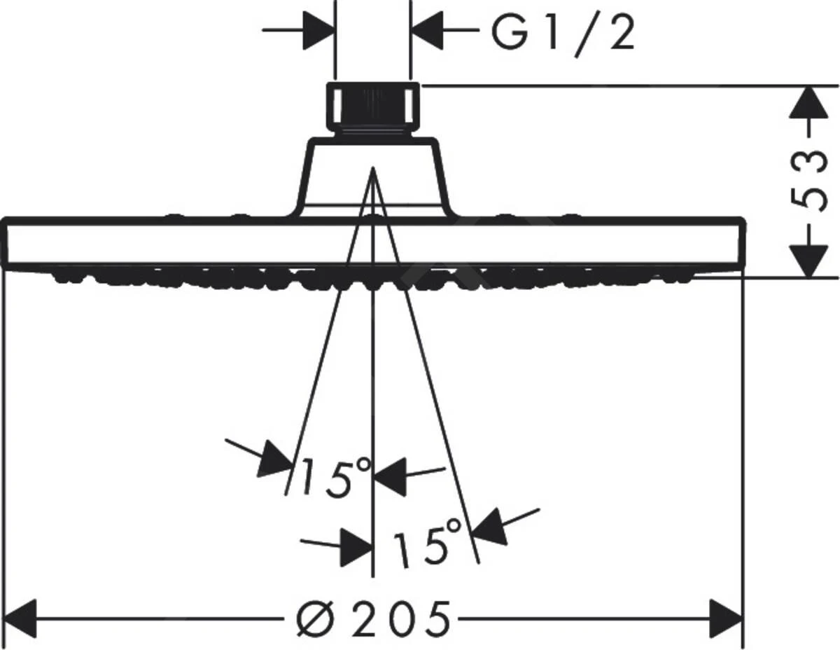 Installatie op douchearm of plafondaansluiting, niet meegeleverd.