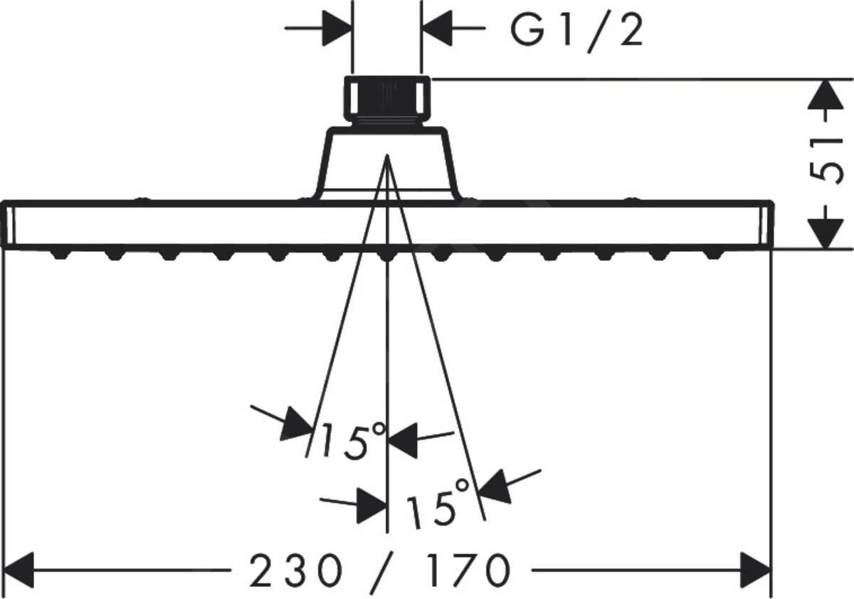 Installatie op douchearm of plafondaansluiting, niet meegeleverd.