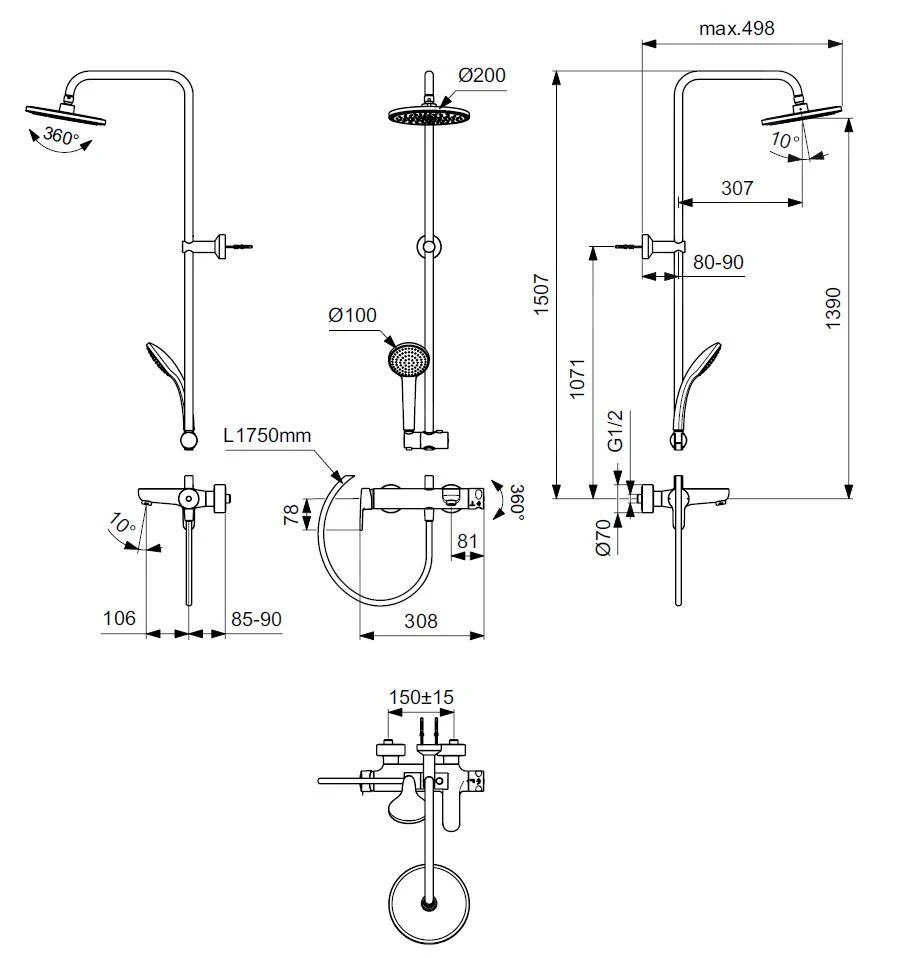 - lengte doucheslang 1750 mm