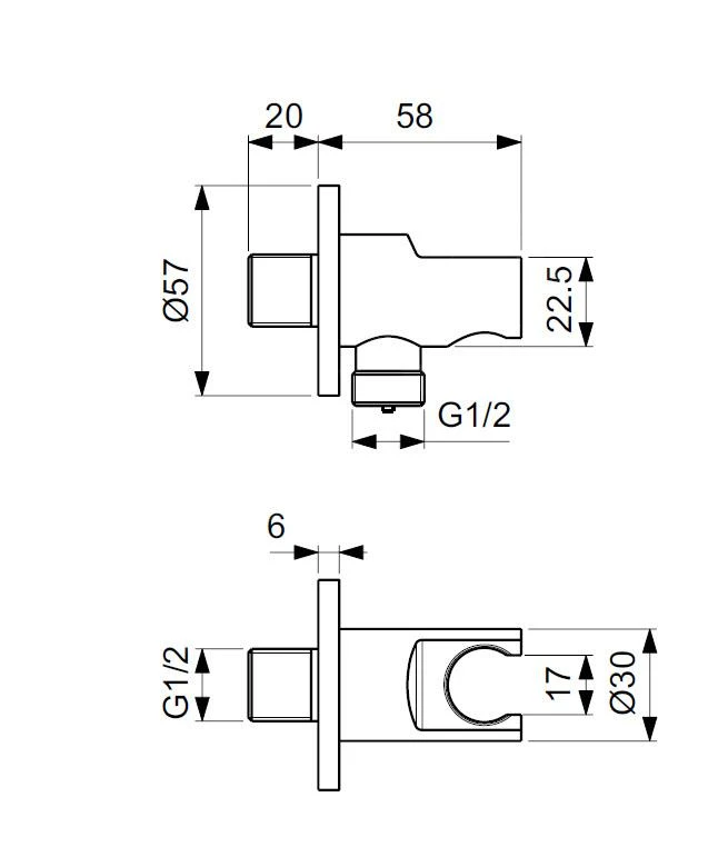 - aansluitschroefdraad en aansluiting in de wand G 1/2