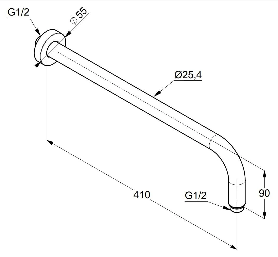 Keuco Edition 300 – Douchearm Voor Plafond Aansluiting, Lengte 100 Mm, Mat Zwart 53089370102