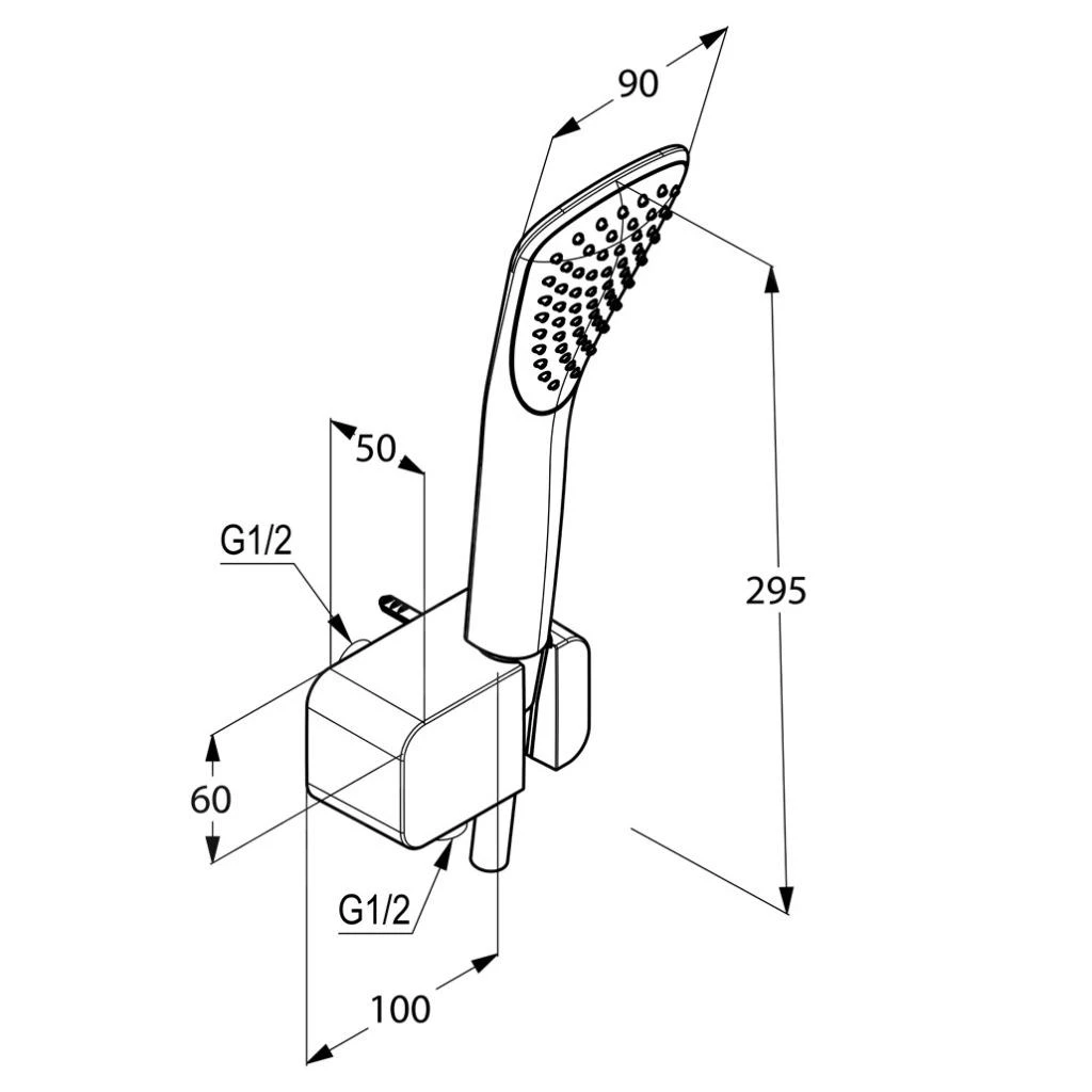 lengte 1250 mm - aansluitbocht met douchehouder DN 15