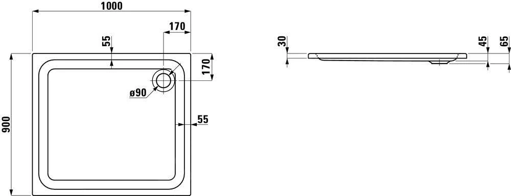 Laufen Indura – Douchebak Met Geluiddempende Pads, 900×900 Mm, Kleur Antraciet H2150710760401
