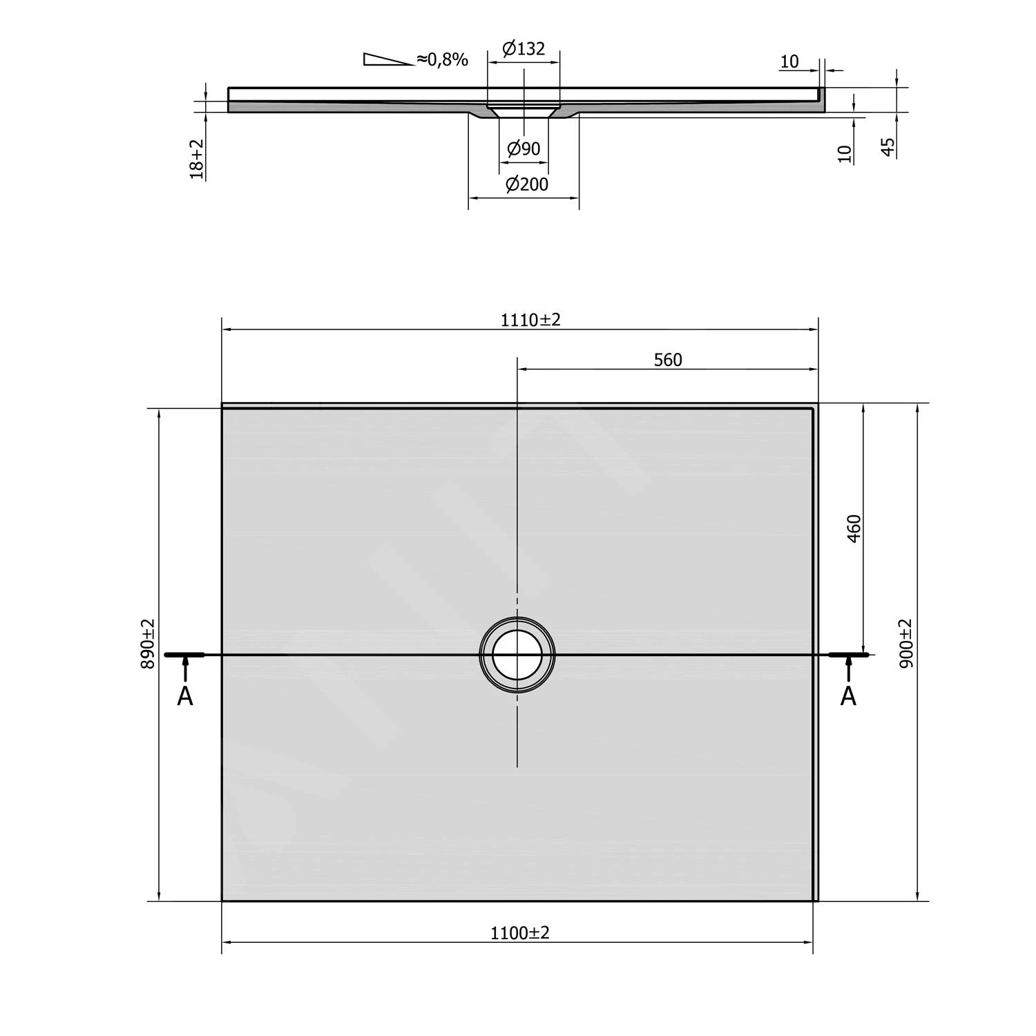- dankzij de groeven aan de onderkant kan de douchebak rechtstreeks op de vloer worden gelijmd