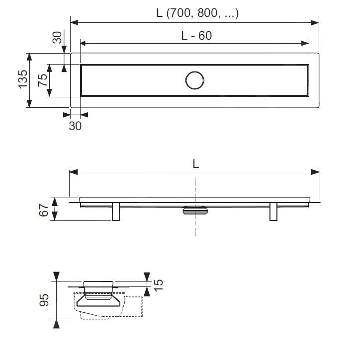 Minimale bouwhoogte (tot aan de bovenkant van betegeling): 95 mm
