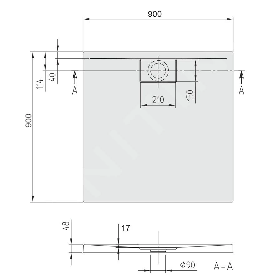 - geleverd inclusief afvoerafdekking met afmetingen: 130 x 210 mm in de kleur van de bak
